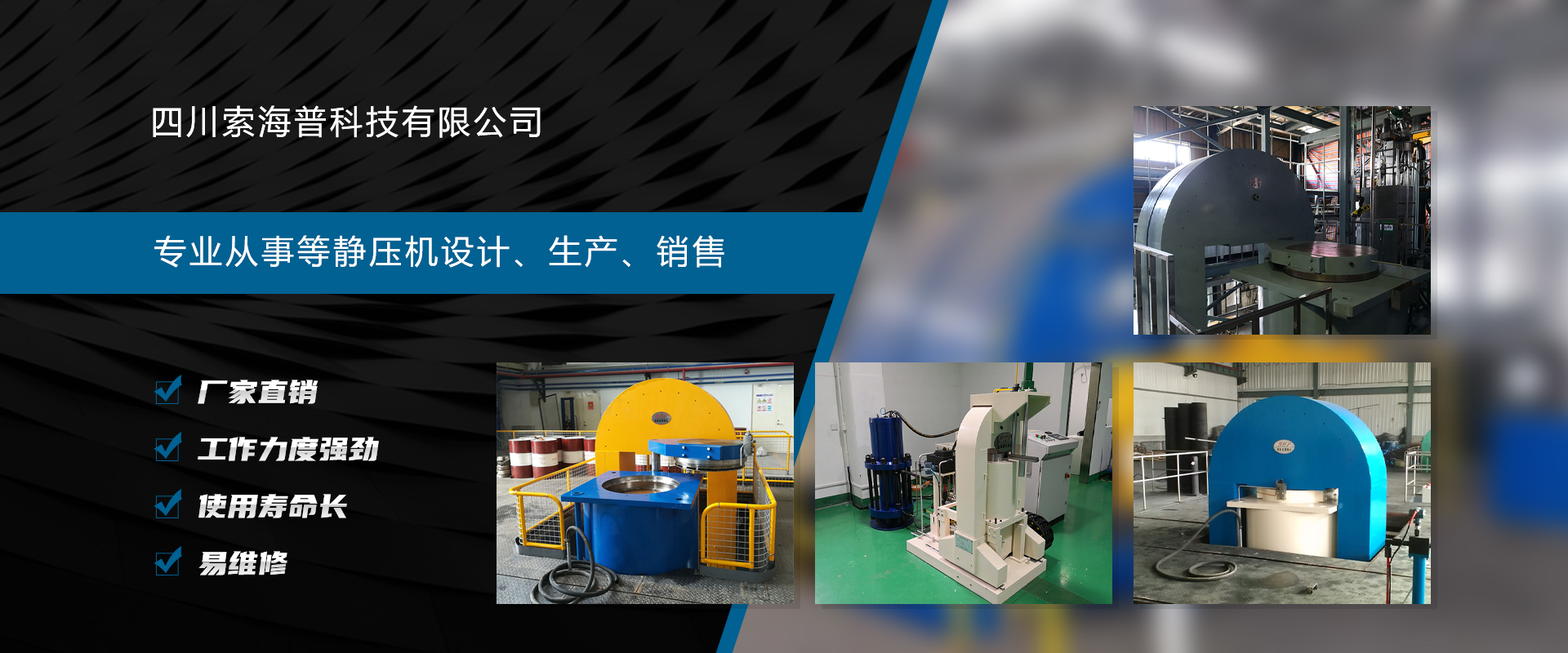 四川索海普注冊于四川省成都市武侯區,是一家專業從事等靜壓機設計、生產、銷售的高科技企業。自公司成立以來,設計、生產、銷售:冷等靜壓機工作缸直徑φ100mm~φ2500mm,壓力50MPa~600MPa;干袋式等靜壓機;以及溫度小于300℃的溫等靜壓機。